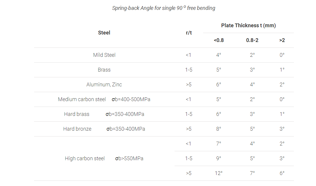 تتناسب زاوية الزنبرك الخلفية مع نقطة إنتاج المادة وتتناسب عكسياً مع المعامل المرنا E. من أجل تقليل الزنبرك الخلفي لتلك الصفائح المعدنية التي تتطلب دقة عالية ، الفولاذ منخفض الكربونيجب أن يكون الاعتبار الأول ، لا تختار الفولاذ الكربوني العالي والفولاذ المقاوم للصدأ.